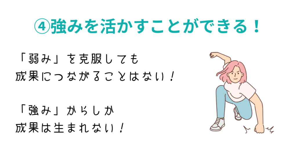 「強み」にフォーカスすることで成果を生み出しやすくします!